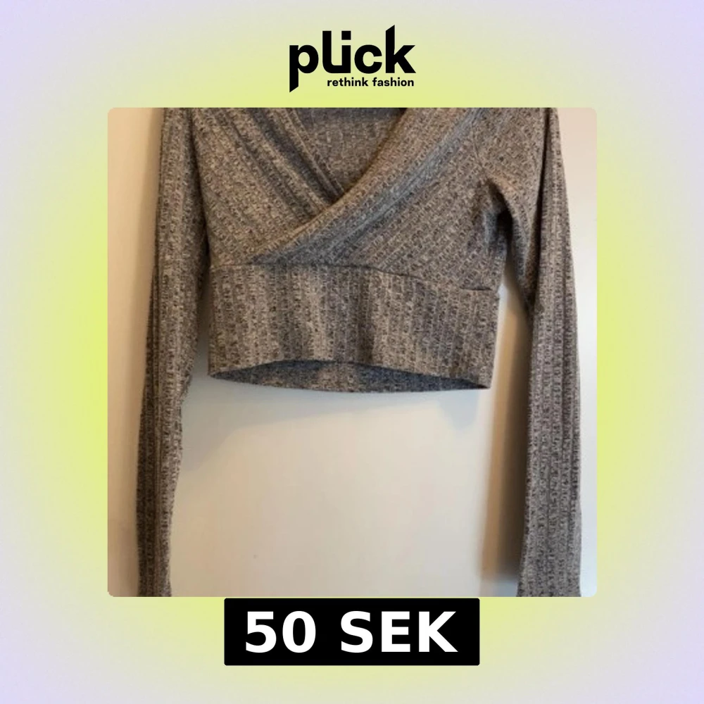 Snygg grå ribbad omlottopp med långa ärmar och croppad passform. Perfekt för en stilren look. Den är i nyskick från Shein i storlek S