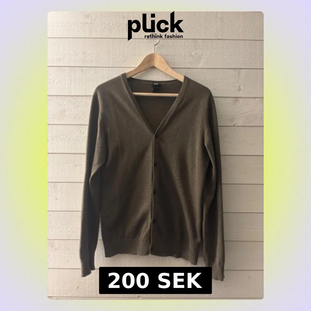 Stilren olivgrön cardigan från HM, tröjan har knäppning framtill. Tröjan är långa ärmad och har ribbade muddar vid ärmslut och nederkant. Perfekt att slänga över en t-shirt för en avslappnad look.
