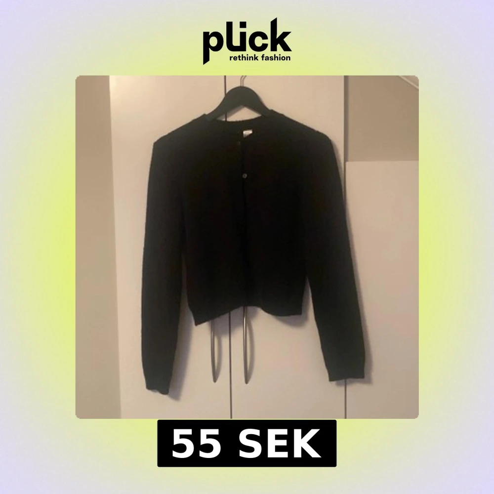 En svart, klassisk kofta från Divided i storlek S. Koftan har rund halsringning, knäppning framtill med små knappar och långa ärmar. Perfekt att slänga över en t-shirt eller linne för en enkel och stilren look.
