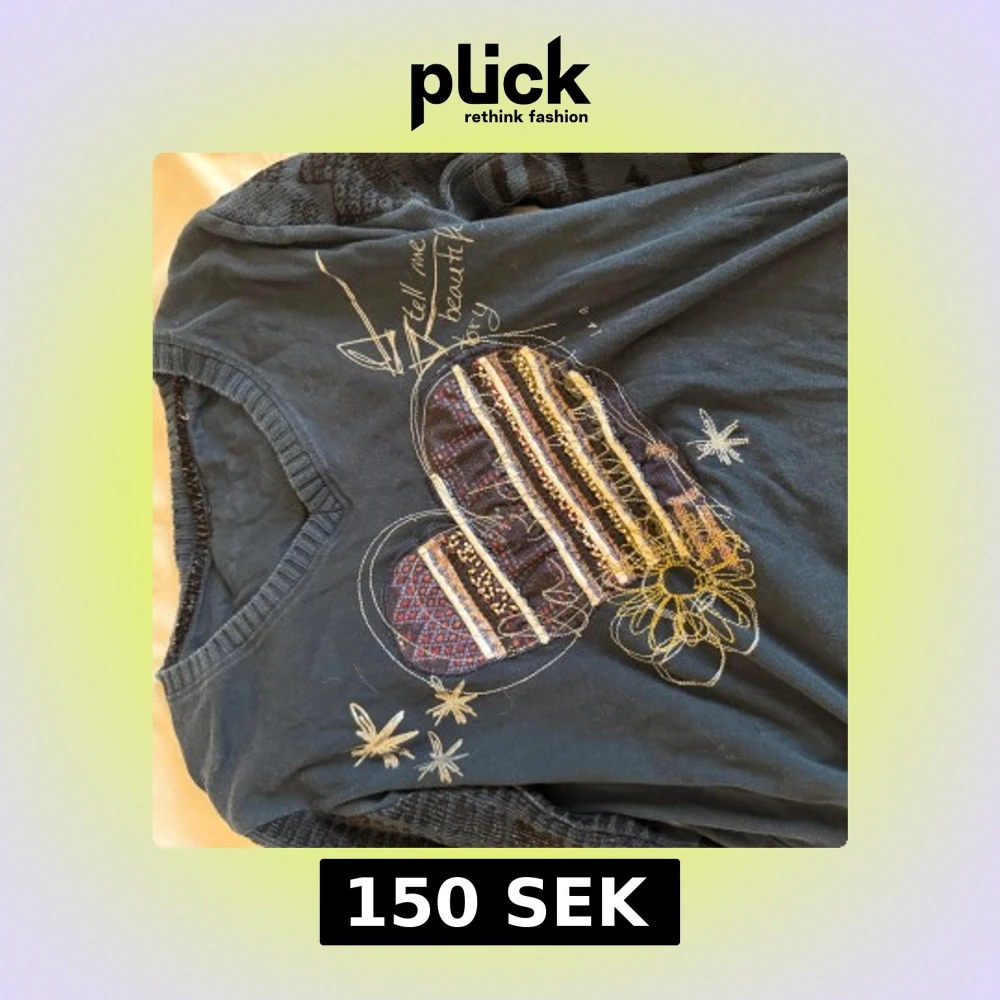 Unik svart långärmad tröja med broderat hjärta och blommor framtill. Ärmarna har coola mönster och ribbade muddar i grått. Tröjan har v-ringning och detaljer i flera färger, perfekt för dig som gillar personliga plagg med lite edge.