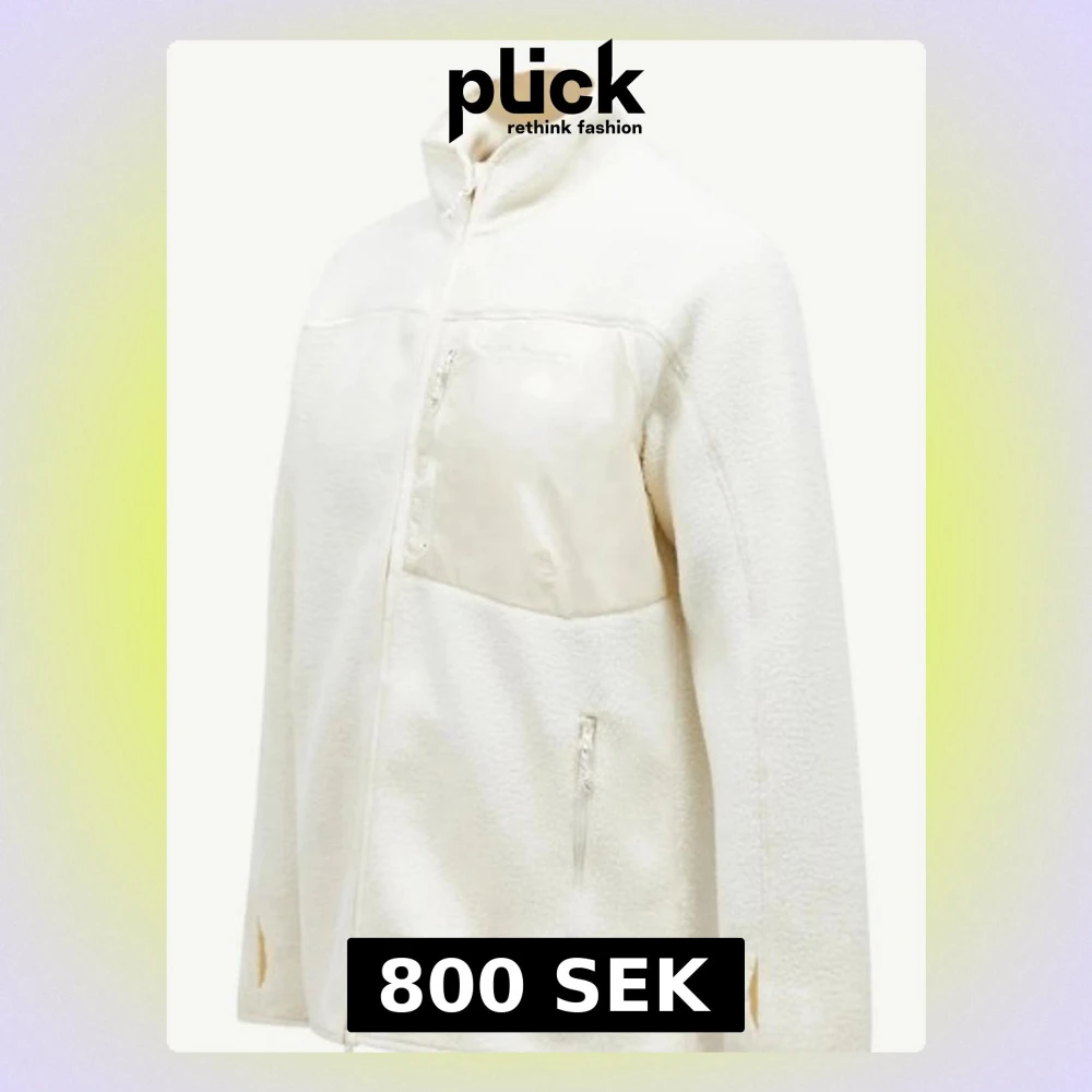 Säljer en stilren vit fleecejacka med hög krage och dragkedja framtill. Jackan har en bröstficka i blankt material och två sidofickor med dragkedja. Perfekt för lager-på-lager och riktigt mysig under kalla dagar.