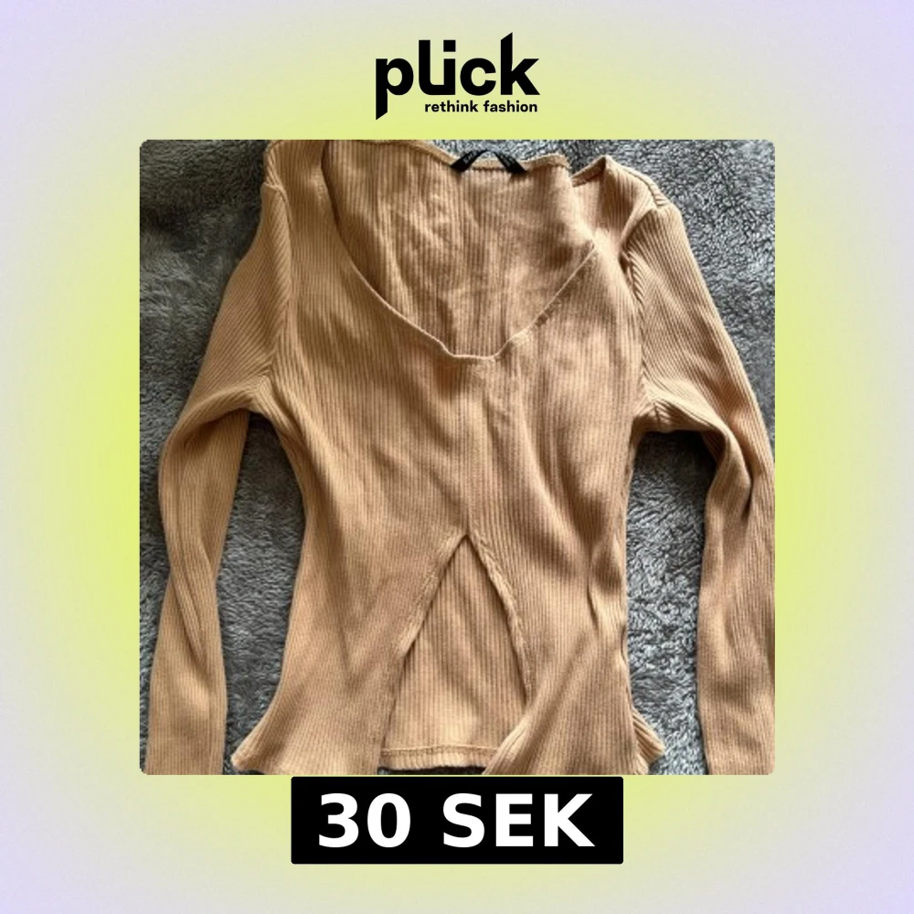 Trendig beige ribbad topp från SHEIN med lång ärm och v-ringad hals. Snygg detalj med slits framtill som ger en cool twist. Perfekt att styla med jeans eller kjol för en chill look.