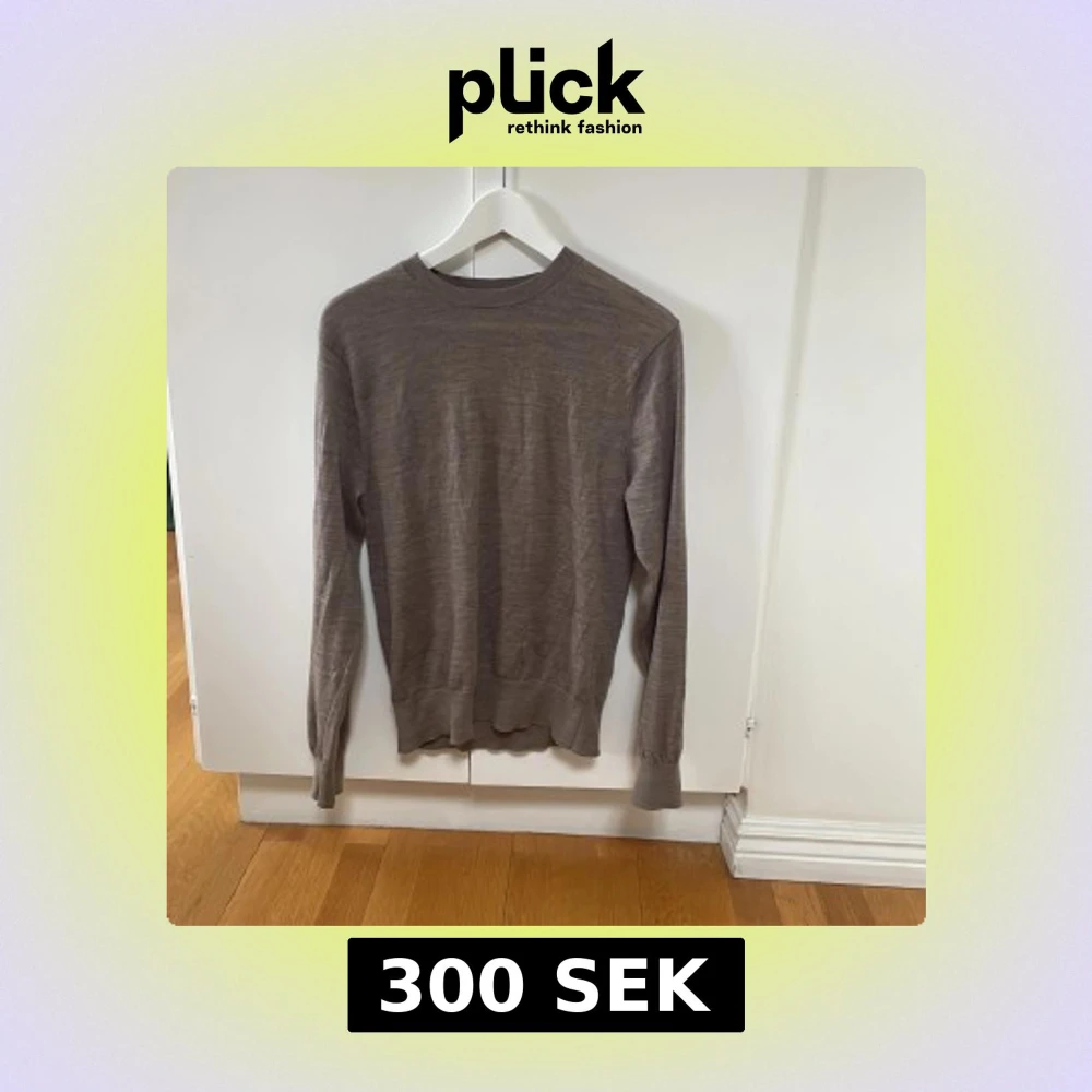 Säljer en tunn, brun stickad tröja från Sandö i storlek S. Tröjan har rund halsringning, långa ärmar och ribbade muddar vid ärmslut och nederkant. Perfekt för lager-på-lager under kyligare dagar.