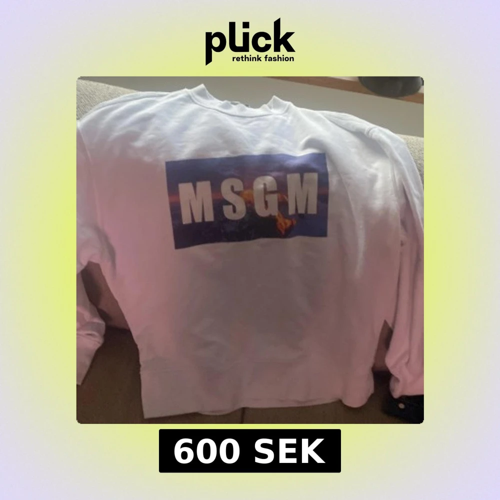 Säljer en vit sweatshirt från MSGM med tryck fram och text bak. Tröjan har långa ärmar och en rund halsringning. Perfekt för en avslappnad stil.