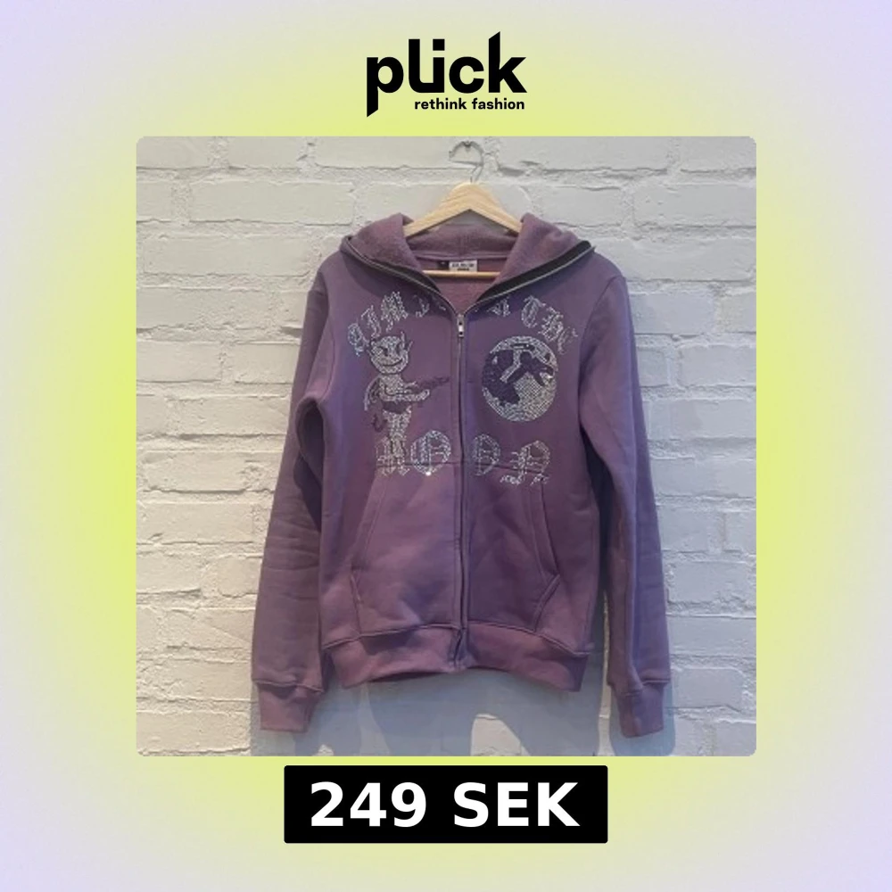 Säljer en lila hoodie från Aim for the Moon med coola strassdetaljer på framsidan. Tröjan har en dragkedja och en mysig huva. Perfekt för att ge din outfit lite extra bling! 💜