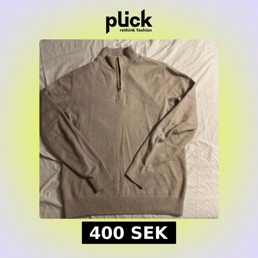 Säljer en stilren beige tröja från Bläck med dragkedja vid halsen. Tröjan har långa ärmar och ribbade muddar vid ärmslut och nederkant. Perfekt för en avslappnad look. Använd max 4 gånger