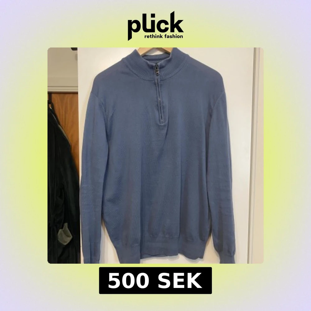 Säljer en stilren blå tröja från Oscar Jacobson med halv dragkedja vid halsen. Tröjan har långa ärmar och en ribbad krage. Perfekt för en avslappnad men ändå elegant look. Storlek S, tror original pris är 1500kr