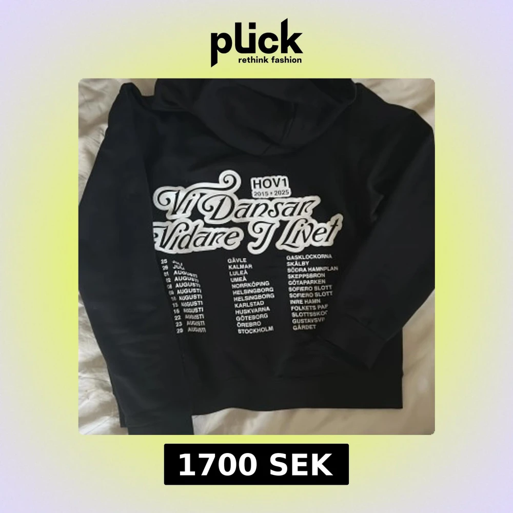 Svart hoodie från Hov1 med vit krona broderad framtill och stort turnétryck på ryggen! Köpt nu på sista spelningen! Som ny!