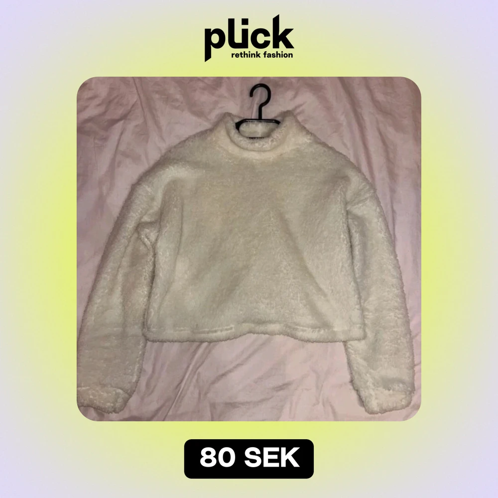 Supermysig vit fluffig tröja som är perfekt för kyliga dagar. Den har en hög krage och är croppad, vilket ger en trendig look. Tröjan är långärmad och gjord i ett mjukt material som känns som fleece. Perfekt för höst och vinter!