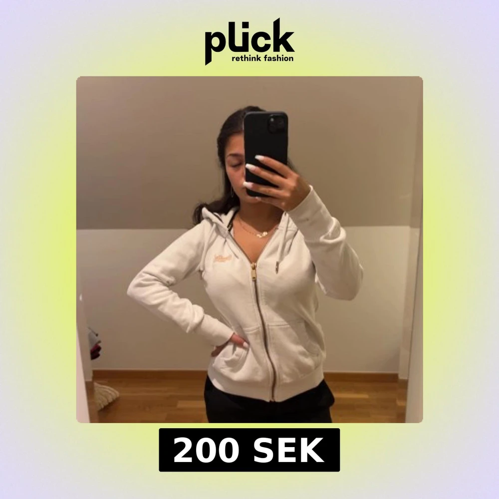 Säljer en vit hoodie från Superdry med guldfärgade detaljer och broderad logga på bröstet. Tröjan har huva med snörning, två fickor fram och dragkedja. Mjuk bomullskänsla och ribbade muddar vid ärmslut och nederkant. Perfekt för kalla dagar då den är väldigt varm.