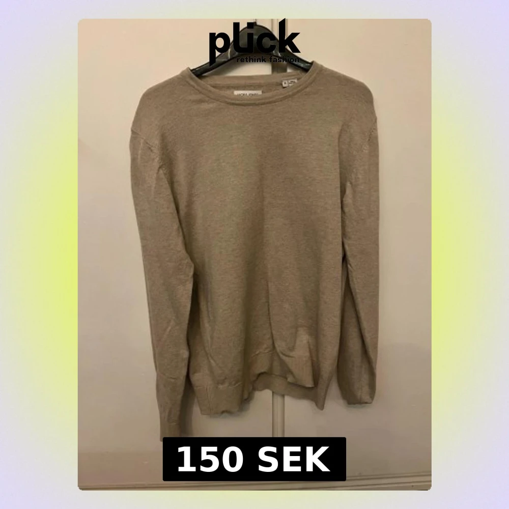 Säljer en beige stickad sweatshirt ifrån Jack and Jones i storlek S. Skick 8/10.