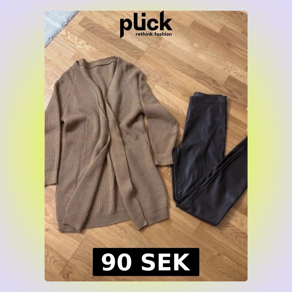 Byxor i läderlook från Cubus + stickad kofta från Shein, stl S Fint skick, säljs gärna tillsammans eller separat. Pris: 90