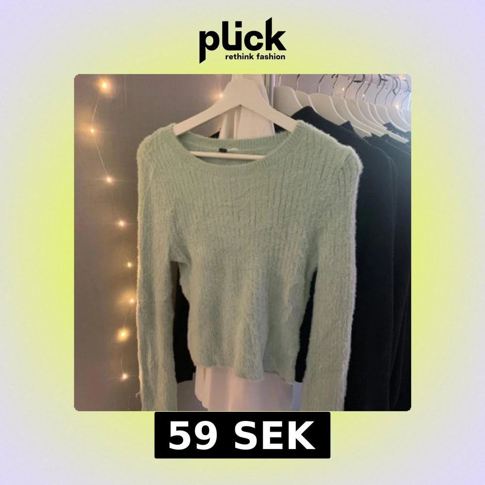 Fin mintblå tröja från H&M, storlek S. Jättemysig tröja med slits vid armarna. Använd fåtal gånger, nypris 149kr. Tröjan har legat i ett förråd ett tag, därav ser den inte lika fluffig ut som resterande bilder. Den tvättas och stryks självklart innan försäljning 🤍