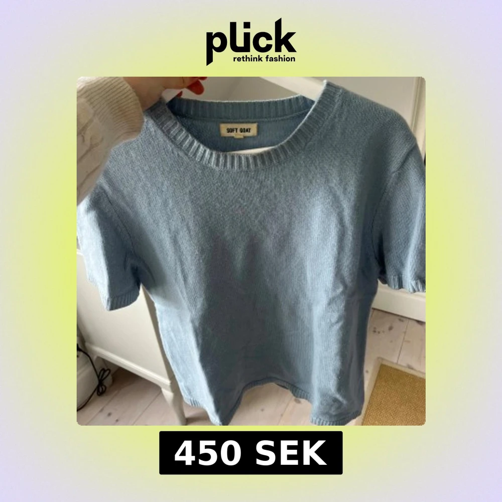 Supermjuk ljusblå stickad t-shirt från Soft Goat med rund halsringning och ribbade kanter. Perfekt för dig som gillar en clean och chill look. T-shirten har korta ärmar och är gjord i ett lyxigt material som känns riktigt skönt mot huden.