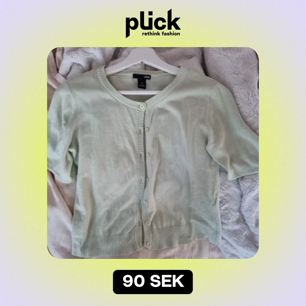 Jätte söt ljusgrön kortärmad kofta💖perfekt nu till våren och sommaren strl M men jag brukar ha xs så passar xs till m beroende på hur man vill att den sitter💞