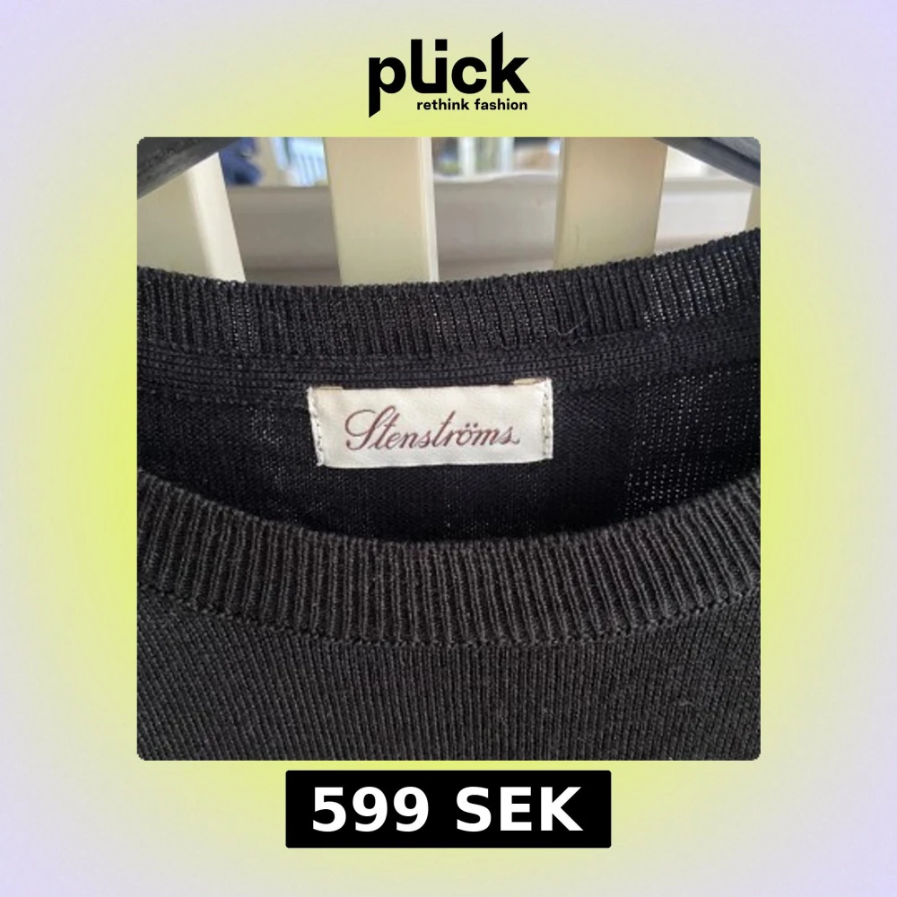 Svart tröja i 100% merinoull från Stenströms. Fint skick men har krympt i tvätten så sitter som XS.