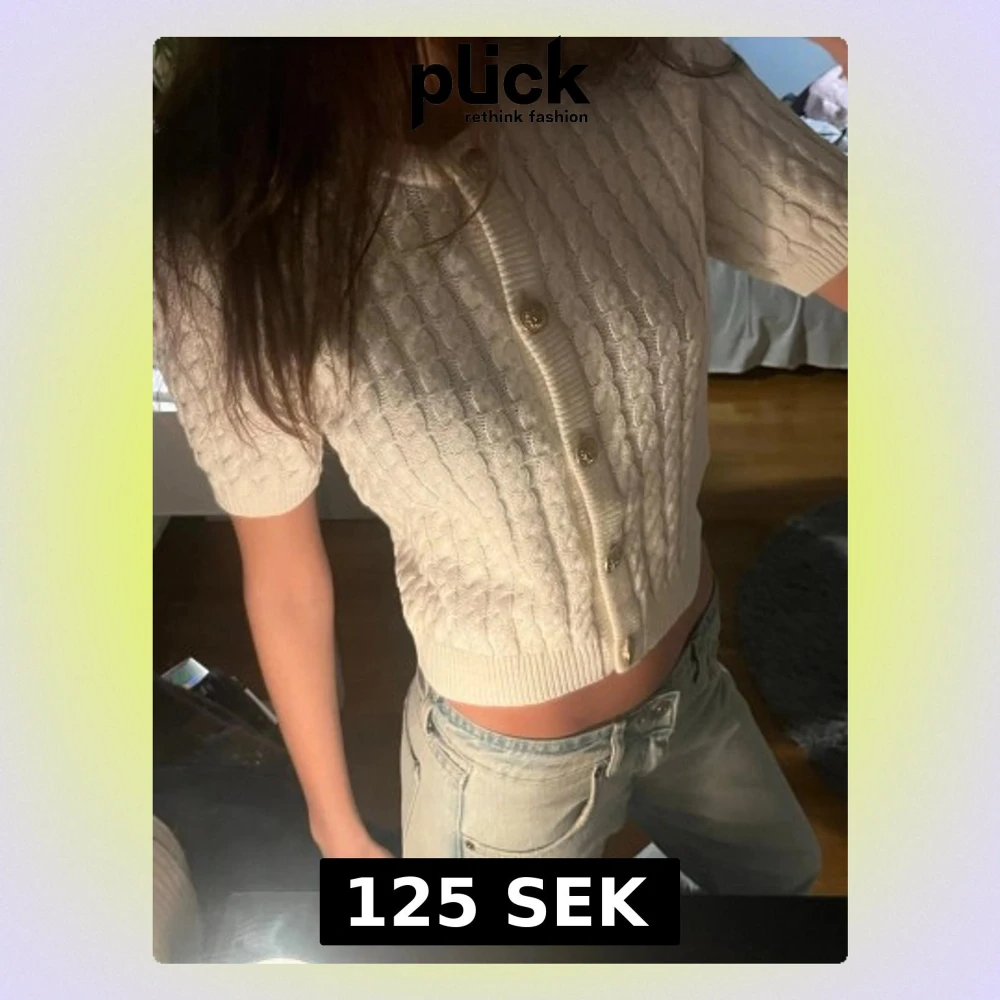 Säljer denna vit stickade kortärmade koftan från H&M, med guldfetaljer. I stolek S. Tröjan är näst in till helt oanvänd.