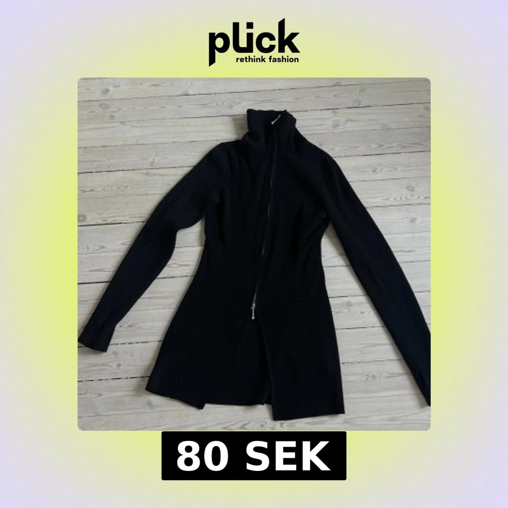 Snygg svart långärmad jacka med dragkedja framtill. Jackan har en hög krage och en stilren design som passar perfekt för kyligare dagar. Perfekt för dig som gillar en minimalistisk stil.🖤