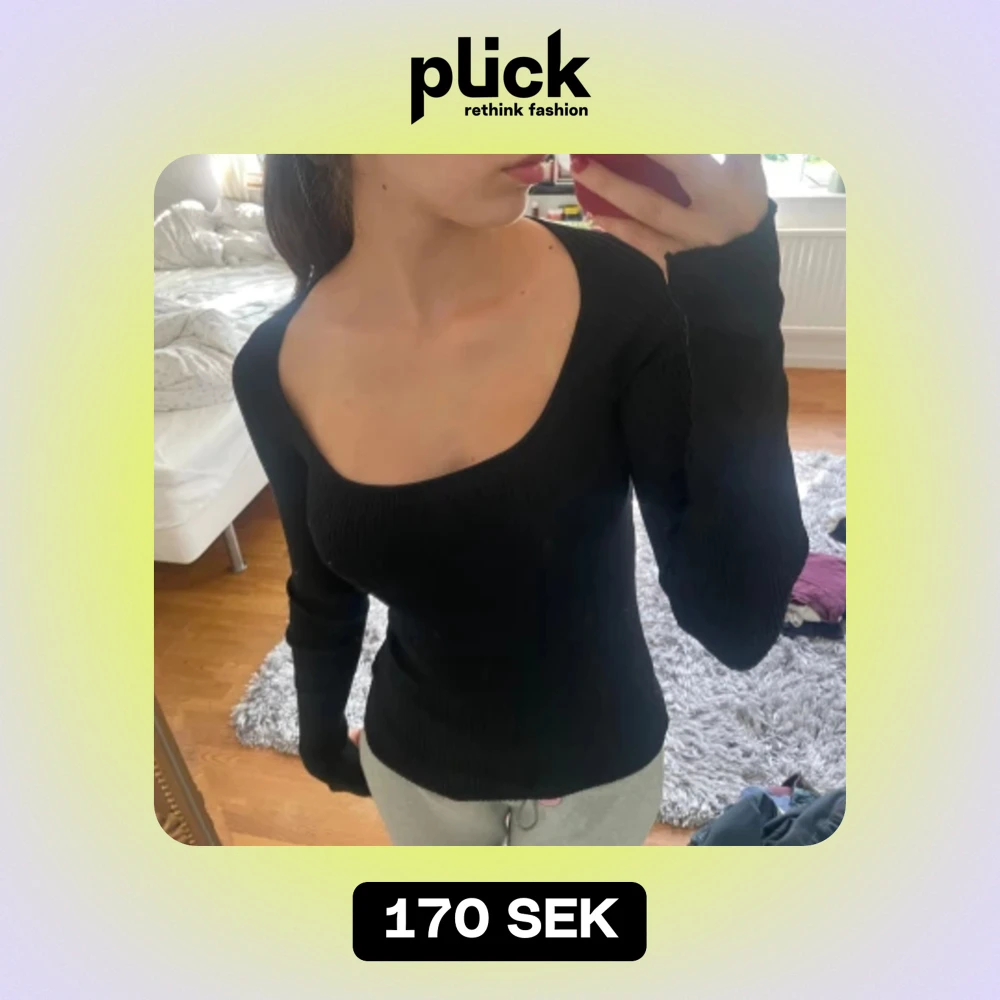 Säljer en snygg svart ribbad tröja med lång ärm och en djup urringning. Perfekt för både vardag och fest! Tröjan är tight och framhäver figuren på ett stilrent sätt. Passar perfekt till höst- och vintergarderoben.