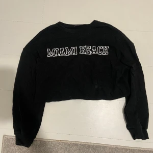 svart croppad tjocktröja med text på