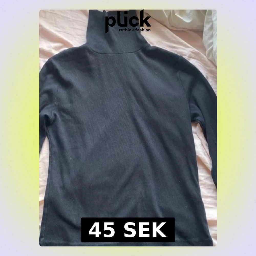 Svart polotröja från BikBok i storlek L. Tröjan är ribbstickad med lång ärm och hög polokrage, perfekt för lager-på-lager under kyliga dagar. Enkel och stilren design som funkar till allt.