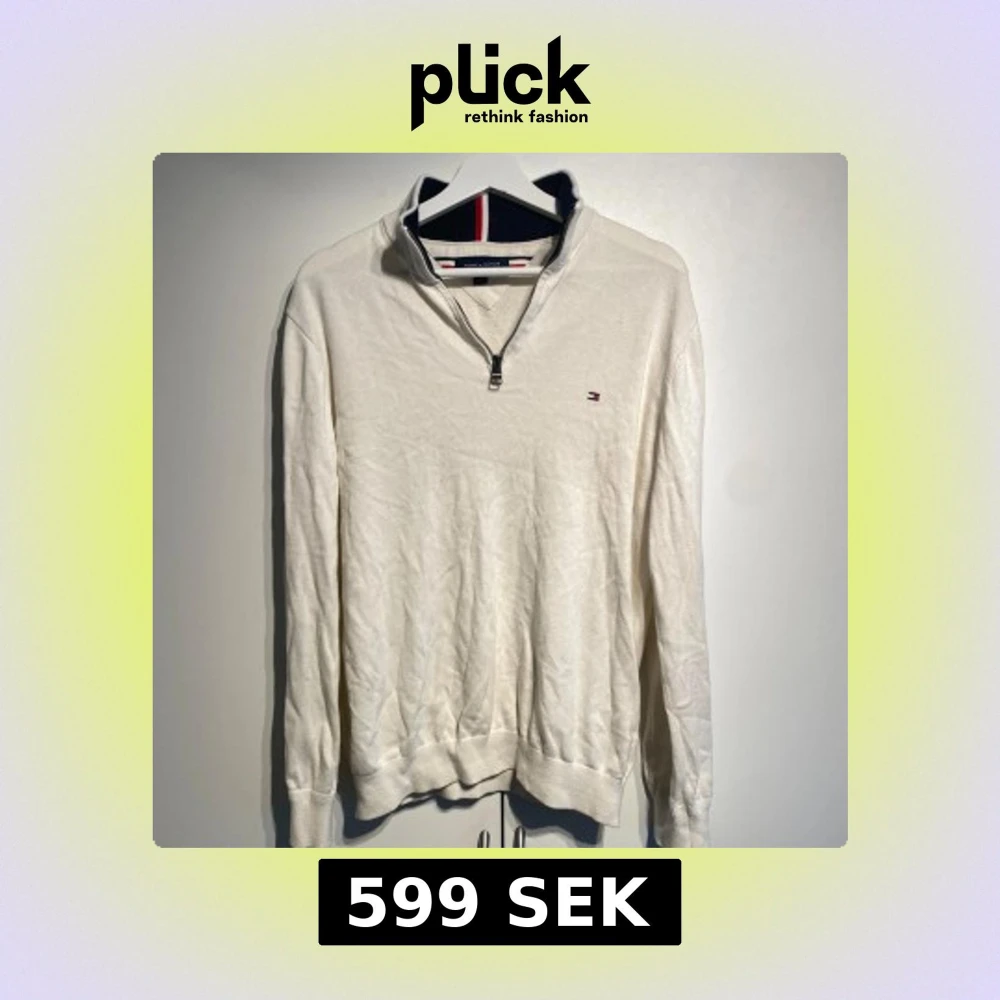 Vit långärmad tröja från Tommy Hilfiger med half zip och liten broderad logga på bröstet. Tröjan har ribbade muddar och krage med snygga detaljer på insidan. Perfekt för dig som gillar stilren och klassisk look. Storlek M. Välanvänd men i fint skick. Nypris 1700kr. Fler bilder i DM!