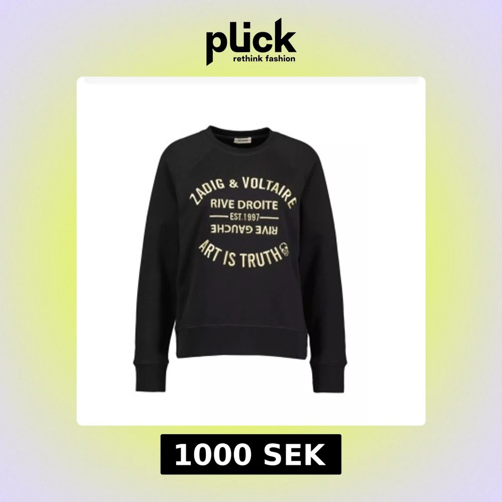 Svart sweatshirt från Zadig med tryck i guld framtill. Den är bara svart baktill som man ser på andra bilden. Köpte för nåt år sen men använder inte längre. Fortfarande skit snygg till jeans eller kjol i sommar💞