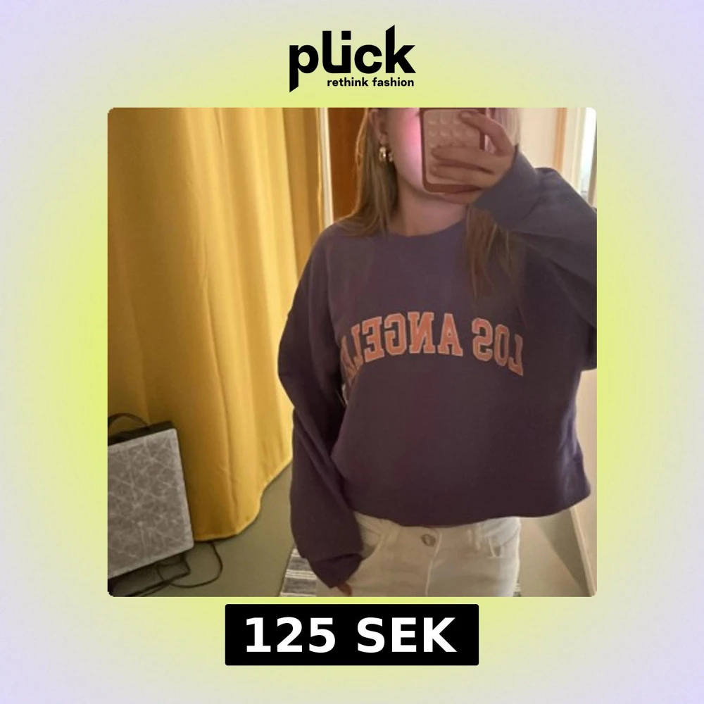 Lila sweatshirt från Pull&Bear med trycket 'Los Angeles' i vitt och orange på bröstet. Står storlek S men skulle säga xxs/xs Inga defekter och helt ren, kan dock tvättas innan jag postar om så önskas!