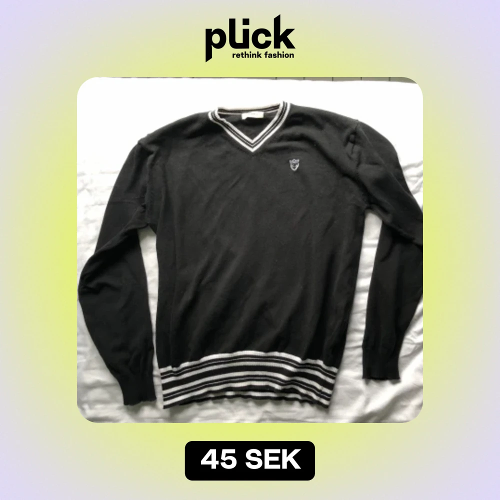 Snygg klassisk svart sweater med ränder och resår vid ärmarna och slutet av tröjan så att den sitter riktigt snyggt! Den är i mycket bra skick, har nästan alldrig använt.