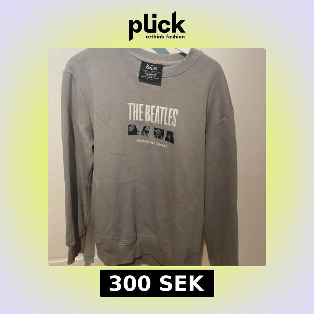 Säljer en grå sweatshirt med The Beatels tryck. STRL M knappt använd.