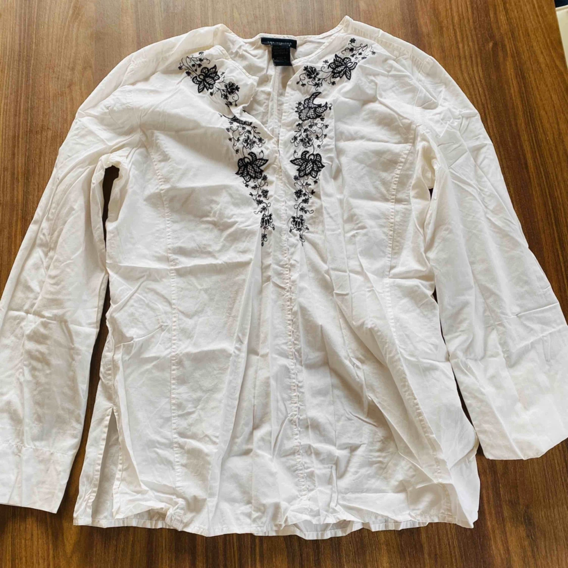 EN FIN VIT SKJORTA! Köpt från THE LIMITED. Storlek: S. Knappt använd, i väldigt gott skick! 😊 Går att mötas upp i Stockholm eller frakta (köparen betalar för frakt) Betalning via Swish ✅