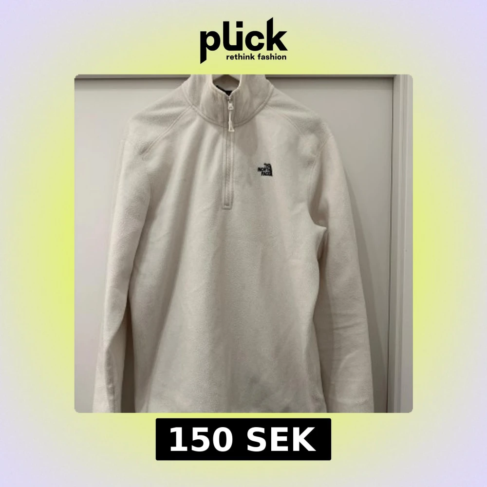 Säljer en vit fleece-tröja från The North Face i storlek L. Tröjan har half zip framtill, hög krage och är långärmad. Perfekt för kyliga dagar och enkel att slänga på sig över en t-shirt. Klassisk logga broderad på bröstet.