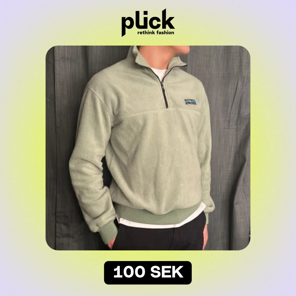 Ljusgrön tjocktröja med halvzip. Bra skick. Köpt på junkyard.