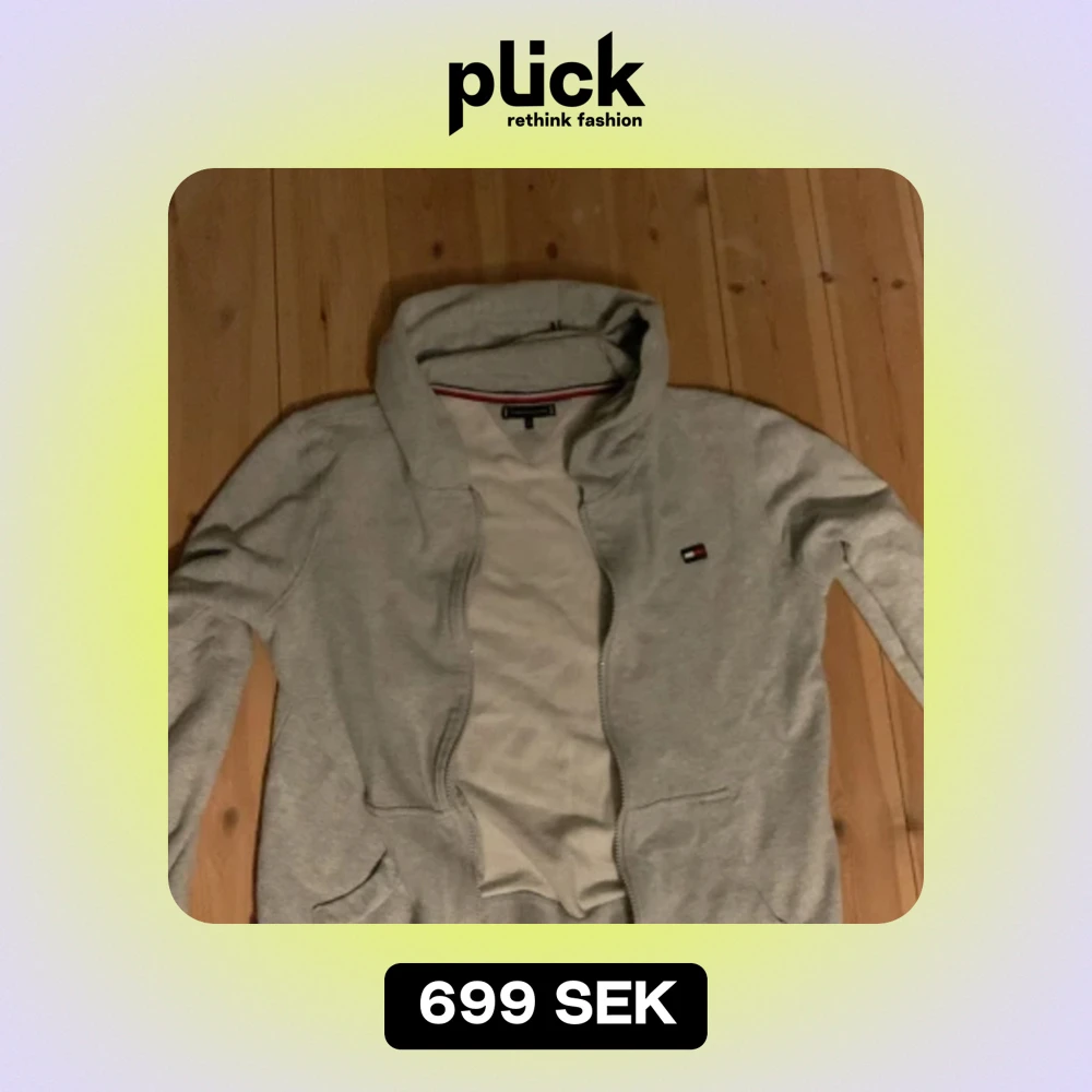 Säljer en snygg och bekväm grå hoodie från Tommy Hilfiger. Den har en dragkedja framtill och en klassisk logga på bröstet samt en stor logga på ryggen. Perfekt för en avslappnad stil och passar till de flesta tillfällen. 10/10 skick