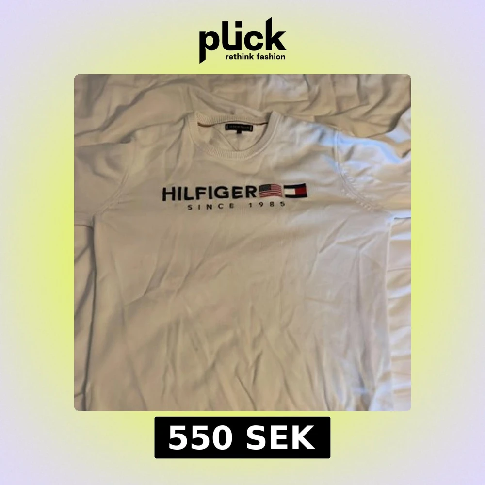 Snygg vit långärmad tröja från Tommy Hilfiger med broderad logga och flaggor på bröstet. Rund hals med ribbad kant och diskreta detaljer i rött och blått. Knappt använd för har växt ifrån den väldigt snabbt. Perfekt för dig som gillar klassisk streetstyle och vill ha ett cleant plagg med tydlig branding. (Pris kan diskuteras)