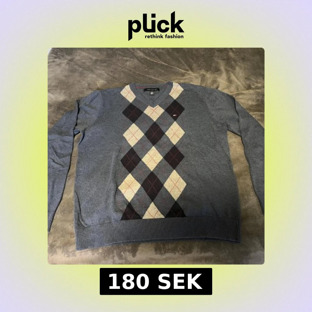 Blå tröja från Tommy Hilfiger i storlek L, passar även M med argylemönster i mycket fint skick.