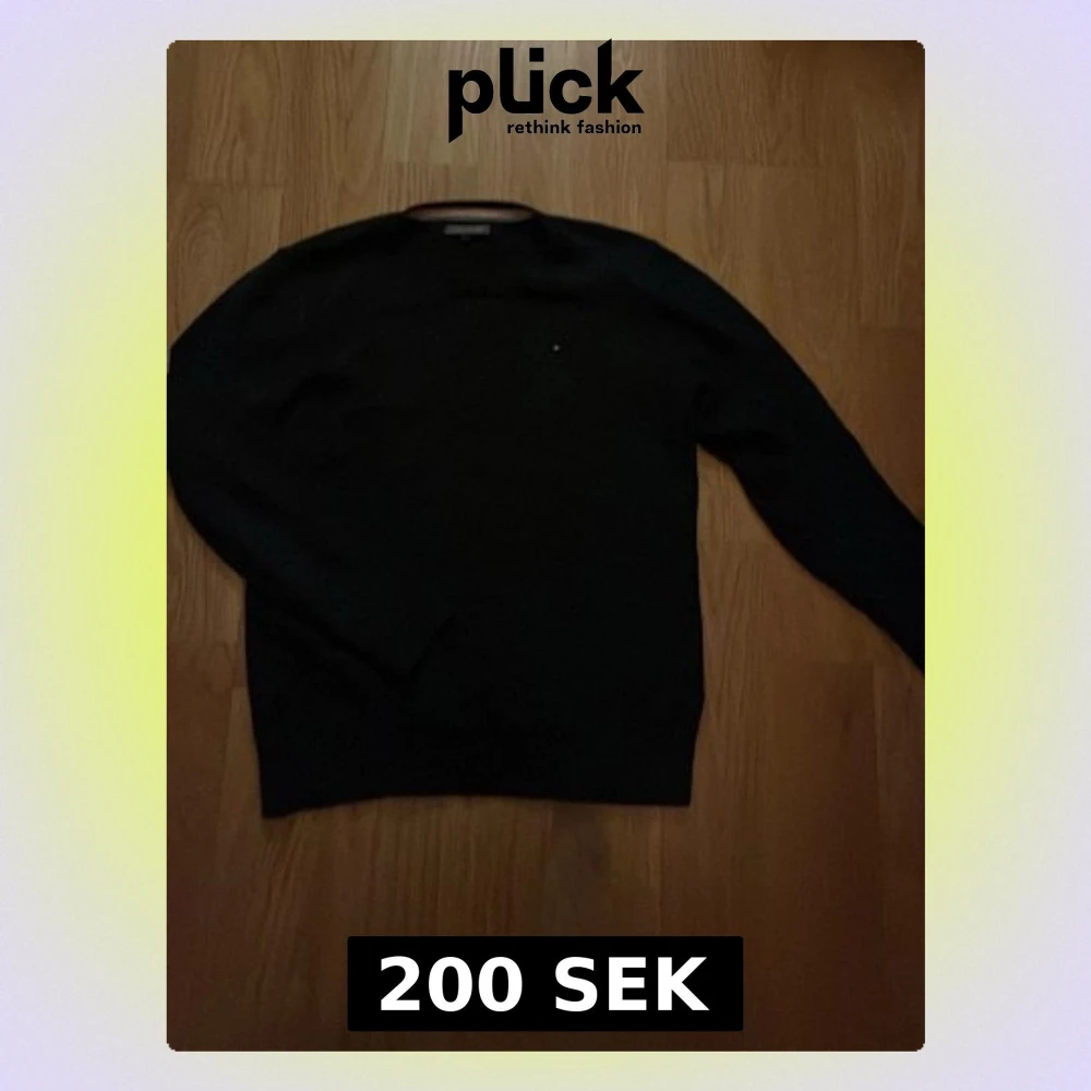 Klassisk svart tröja från Tommy Hilfiger. Enkel design med diskret logga på bröstet och rund halsringning. Perfekt till jeans för en clean och stilren look. Passar som xs. Inga fläckar eller hål