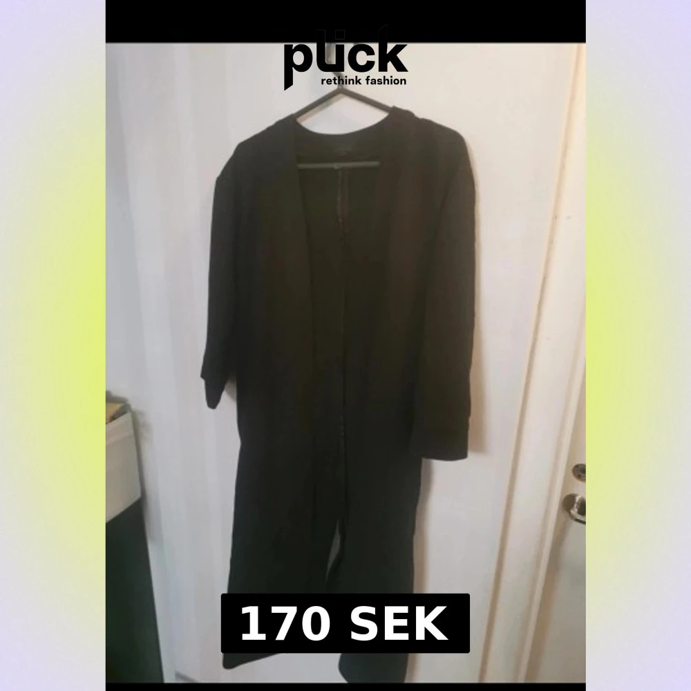 En svart långkofta från Topshop i enkel och clean design. Koftan har trekvartsärm, rak passform och ett bälte i midjan för att skapa snygg siluett. Perfekt för dig som gillar minimalistisk stil.