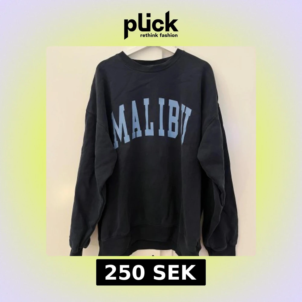 Säljer en mörkblå sweatshirt från Brandy Melville med ljusblått 'Malibu'-tryck på framsidan i storlek onesize. Använd ett fåtal gånger men bra skick!! 🙌🏽