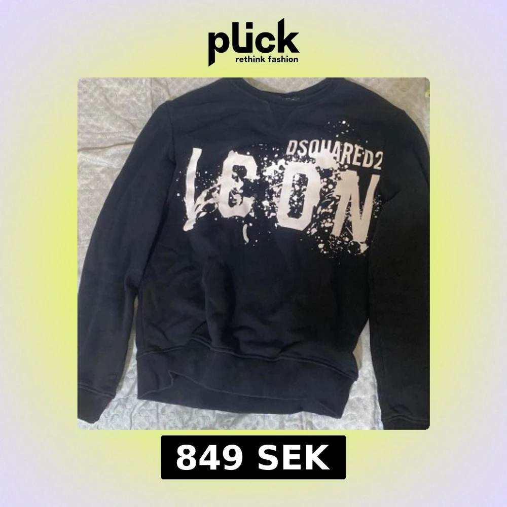 Svart sweatshirt från Dsquared2 i storlek L med stor vit 'ICON'-logga och stänkmönster framtill. Klassisk crewneck-modell med långa ärmar och ribbade muddar. Perfekt statement-plagg för dig som gillar streetwear och vill sticka ut.