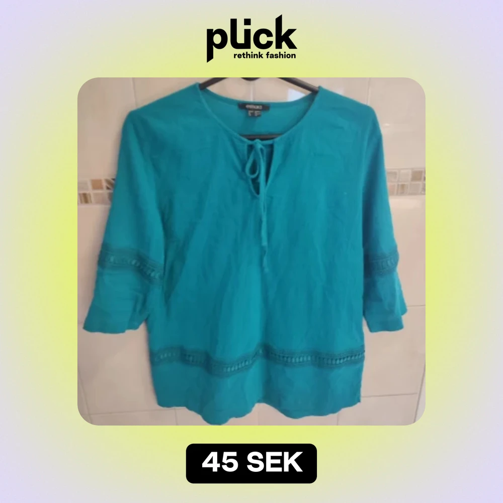 Turkos tröja/blus med fint mönster, på sista bilden ser man exakt vilken färg de är. Material: 100% bomull