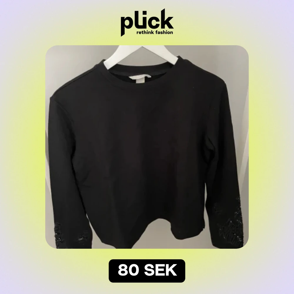 Svart tröja med fina detaljer på ärmarna, från HM i storlek S. Använd fåtal gånger så mycket bra skick✨ Köparen står för frakten, kan mötas upp i Kalmar!