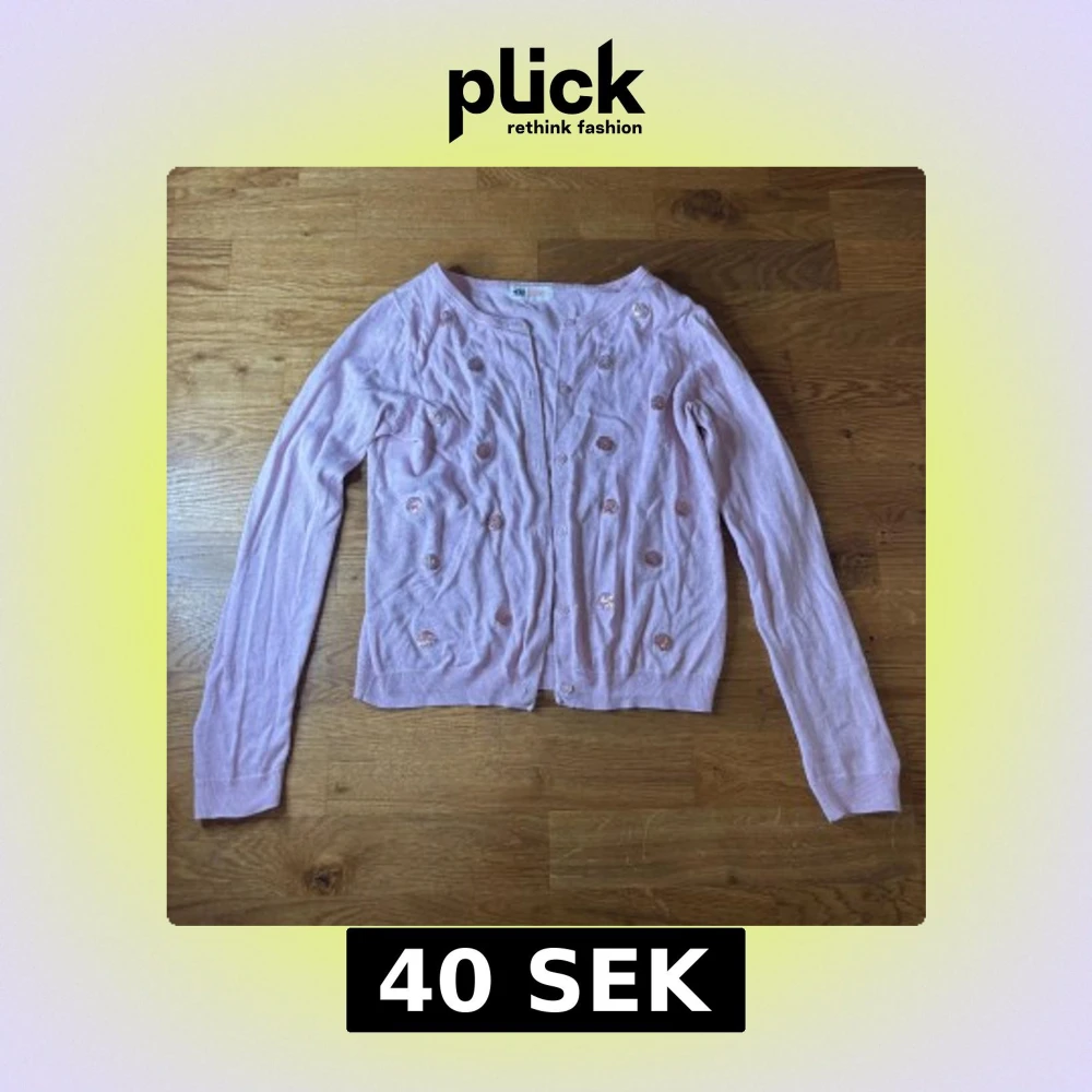 Rosa kofta med knappar och paljetter! Storlek 134/140. Ett hål på armen och 2 små hål under varje liten arm