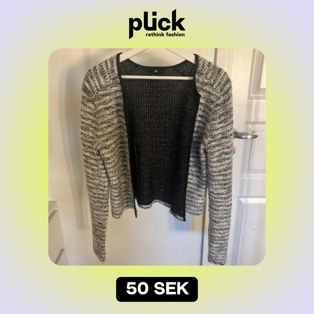 Fin och mysig kofta, grå och vit med guldiga glittertrådar Passar strlk S/M