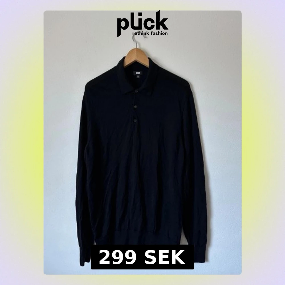 Klassisk svart långärmad pikétröja från Uniqlo med krage och tre knappar framtill. Tillverkad i ett mjukt och tunt material som passar perfekt till lager på lager. Enkel och stilren design som funkar till det mesta. 8D24