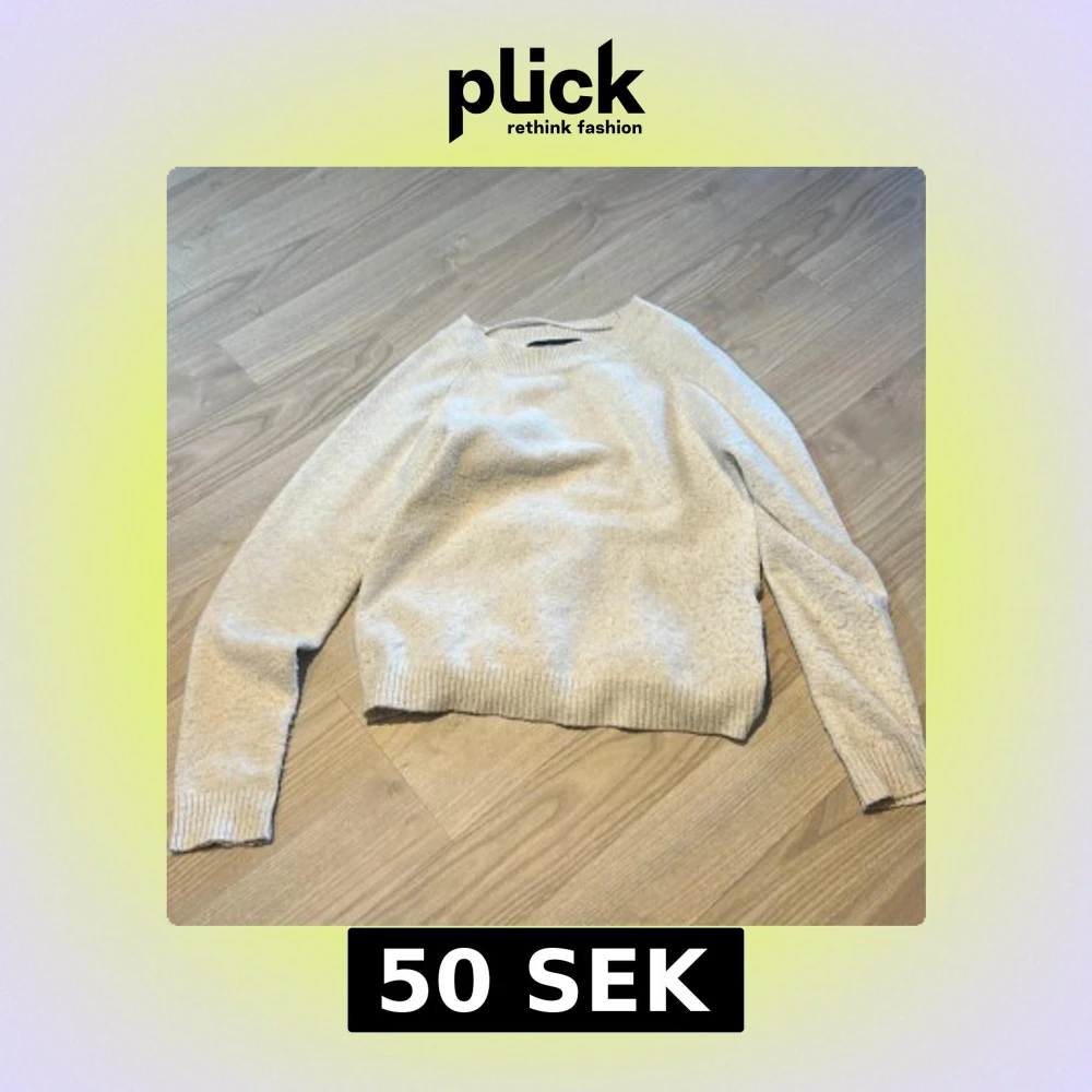 Säljer en enkel och stilren beige stickad tröja från Vero Moda. Tröjan har rund halsringning, långa ärmar och ribbade muddar vid ärmslut och nederkant. Perfekt för lager-på-lager under kyligare dagar.