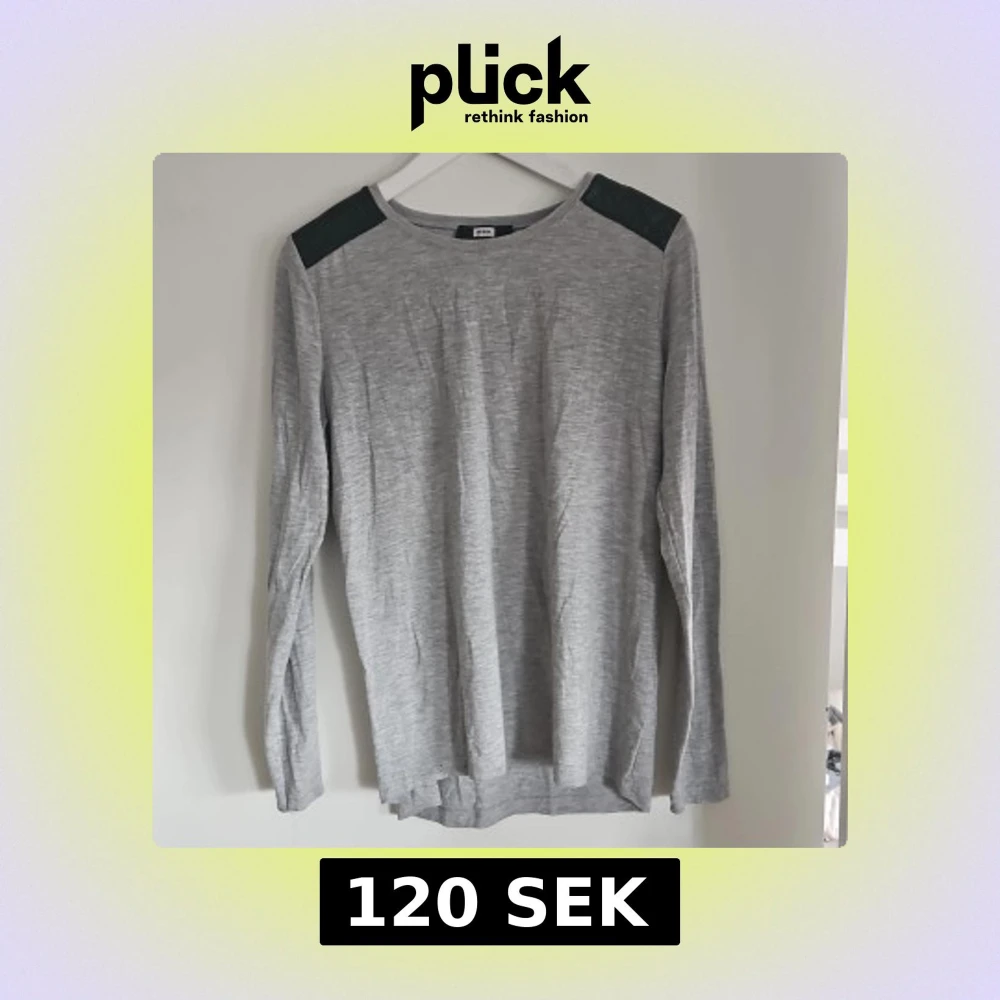 Snygg grå långärmad tröja med svarta quiltade detaljer på axlarna och övre ryggen. Perfekt för en stilren look med en twist. Passar bra till både jeans och kjol.