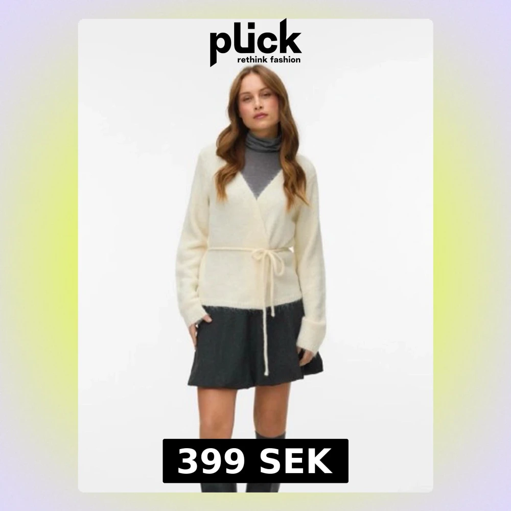Ny kofta, säljs pga för liten! Nypris 499 kr Mysig krämvit omlottkofta med knytband i midjan. Koftan har lång ärm och är stickad i ett fluffigt material som ger en soft känsla. Perfekt att slänga på sig över en topp eller klänning för en chill och snygg look.