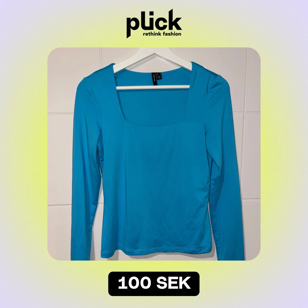 Säljer en snygg blå långärmad topp från vero Moda. Den har en fyrkantig halsringning och är perfekt för både vardag och fest. Materialet känns mjukt och stretchigt, vilket gör den bekväm att bära hela dagen. Säljer för jag ej använder.