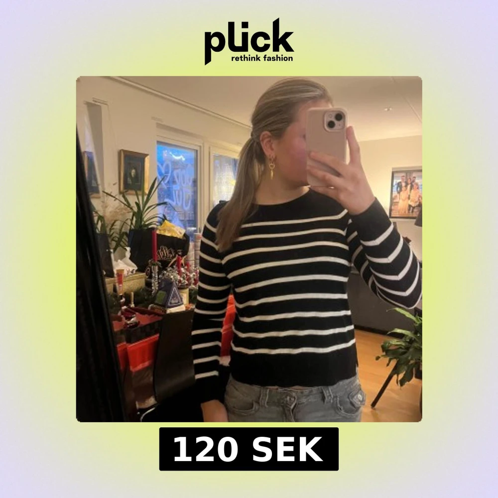 Säljer en snygg svart och vit randig tröja från Vero Moda. Tröjan har långa ärmar och en klassisk rund halsringning. Perfekt för en stilren look.